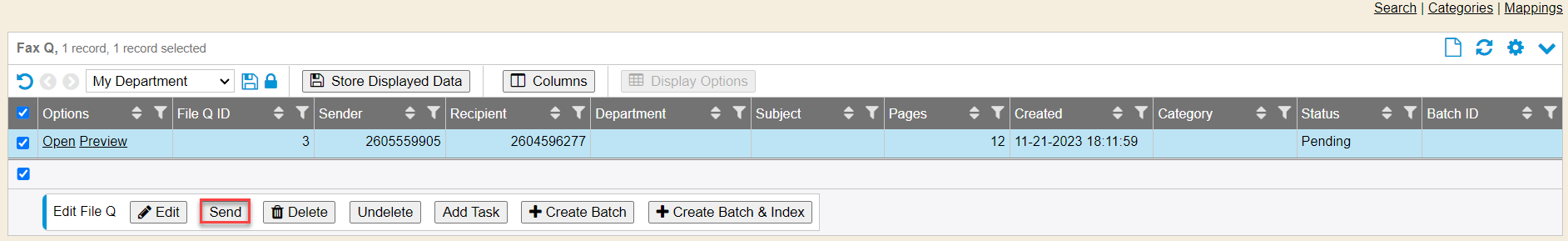 - Add a Category description to group by a recipient group/department or other identifier (which allows for filtering within the file queue), instead of remembering a specific number to filter by. Select the Recipient from the drop down and click the “Save” button.