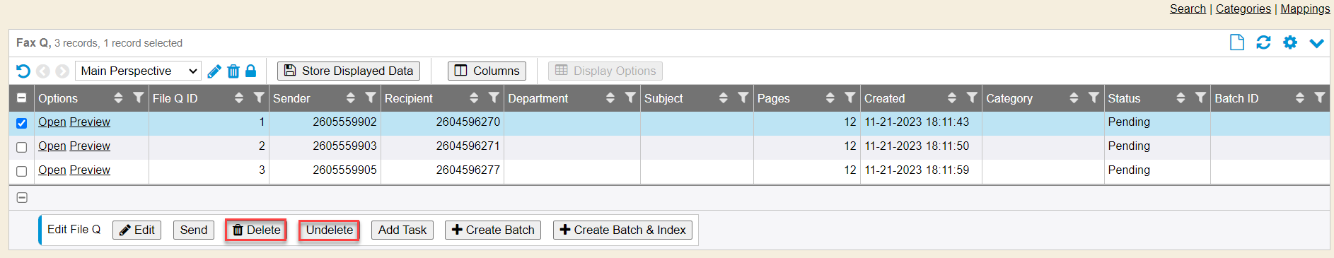- Click “Delete” button or “Undelete” button to change the status of a file item to delete/undelete. Utilize Search to locate any previously deleted files to undelete.