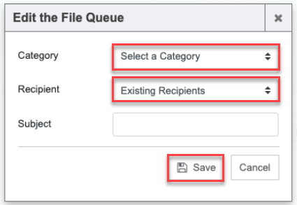 - Select a Category and Recipient (file) to move between the two areas, if one needs to be updated. The Subject can also be added/changed. Click the “Save” button.