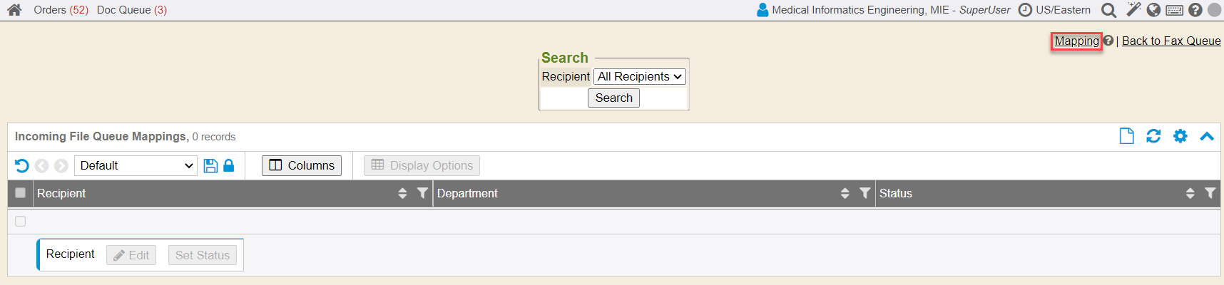 - Select a Recipient or add a recipient and then select the department that will be mapped. Click the “Save” button.