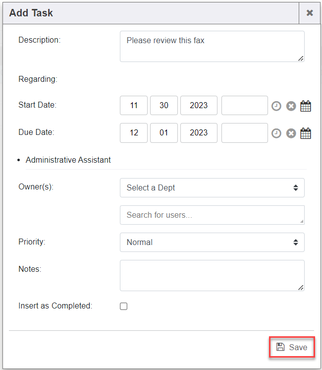 To learn more about the Incoming File/Fax Q Set-Up and Documentation, follow the link below to the Learning Management System course: