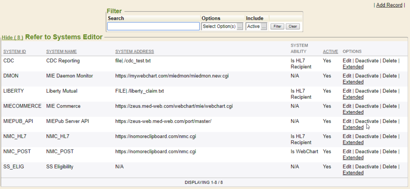 - System Ability - This is a high level overview of what the connection is used for. HL7, Webchart to Webchart, among others